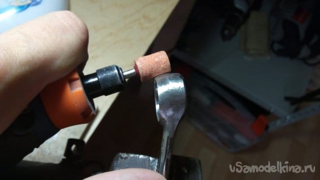 Необходимо сточить внутренние выступы, для этого воспользуемся бормашиной и шарошкой по металлу.
