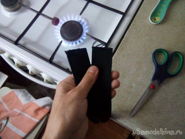 Подравниваем и запаиваем концы нейлоновой ленты, чтобы она не распускалась: