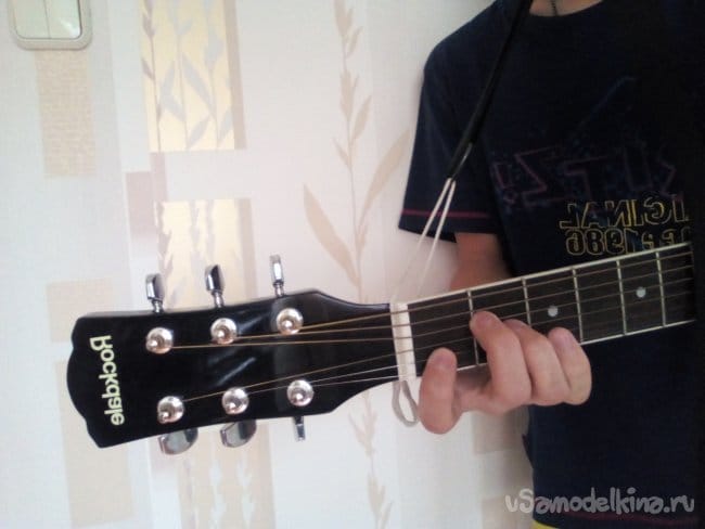 Скажу сразу про роль полукольца и шнура. Они не только делают конструкцию разборной. Если просто обернуть гриф гитары нейлоновой лентой, то она будет собираться в складки и мешать играть. Она слишком широка для этой цели.