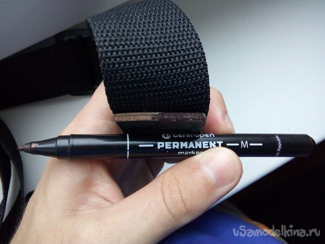 Для более эстетичного вида я покрасил все срезы ремня чёрным перманентным маркером: