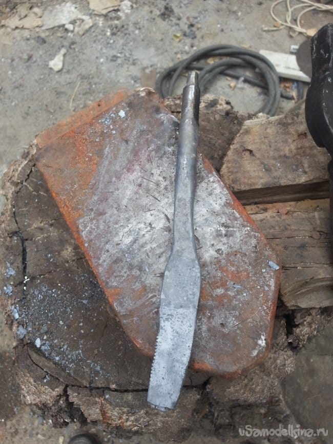 Оставляю лезвие и приступаю к ручке. Вытягиваю формируя квадрат