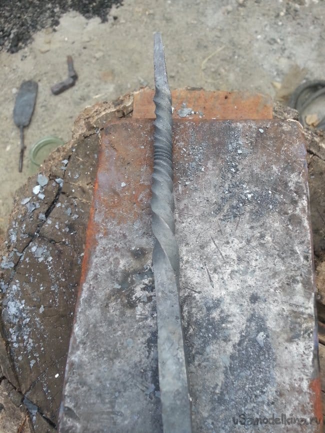 Побродил по сети, почитал что сталь вроде как крепкая, износостойкою и не ржавеет. Проверил по искре на рабочей головке сталь лучше чем на теле сверла. Думаю получится растянут металл на все лезвие. И так вот сверло для ножа.