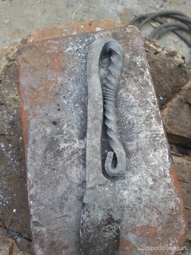Далее нагреваю кончик и загинаю, теперь сгибаю в нужном месте формирую ручку.
