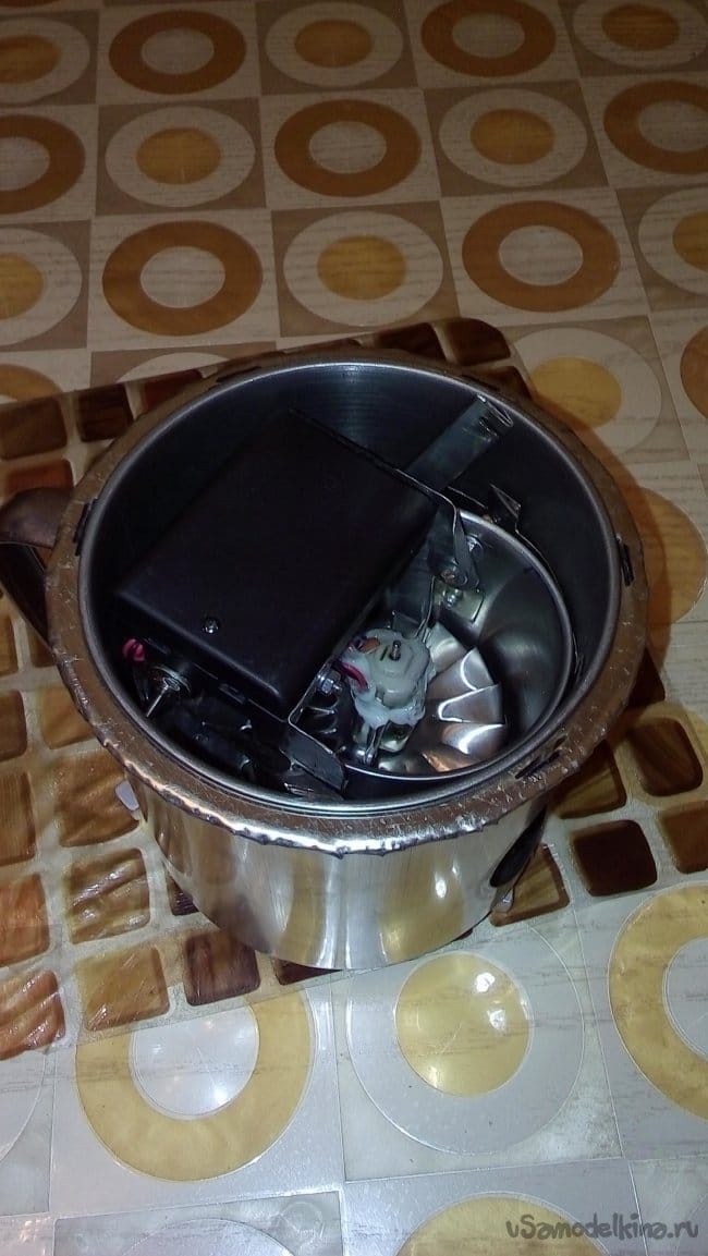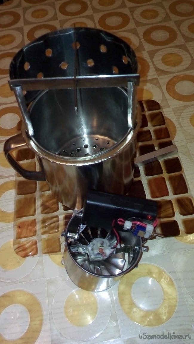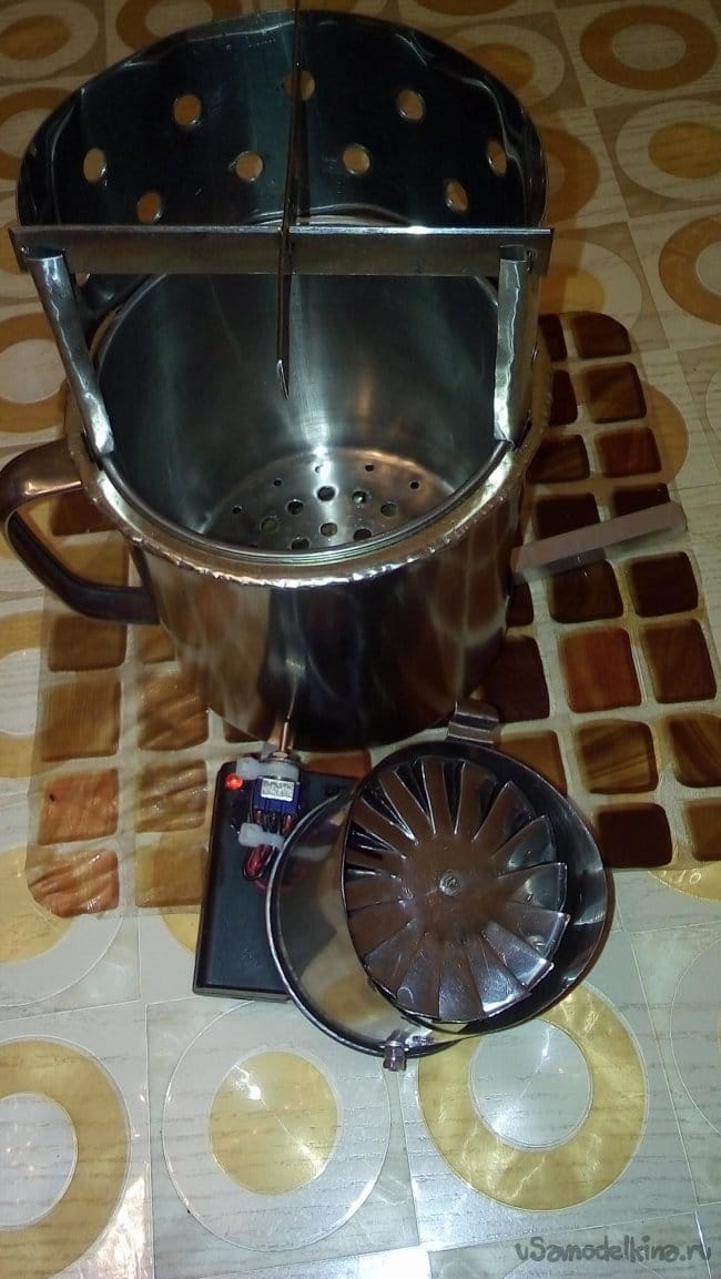 В корпусе турбинки установлены узлы крепления двигателя турбинки с таким расчетом, чтобы вентилятор турбинки был достаточно близок к корпусу большей кружки, но не касался его (Рис. 1, Фото 16-21).