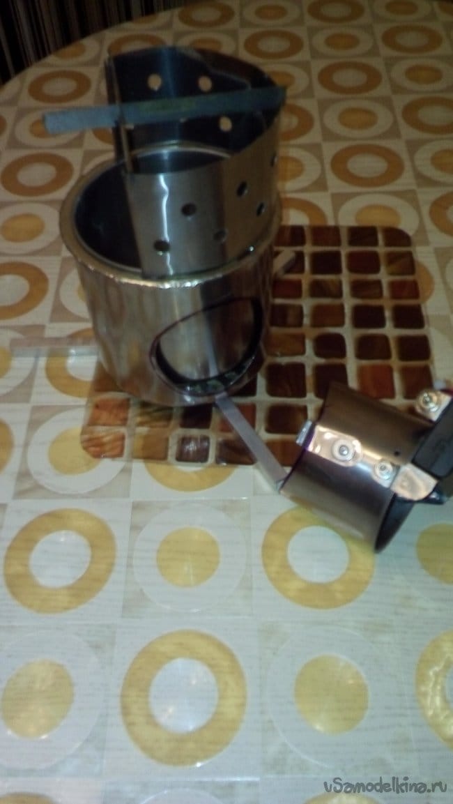 В верхней части корпуса турбинки на заклепке установлен скоба (Рис. 1) для крепления к корпусу большей кружки шириной горизонтального пропила.