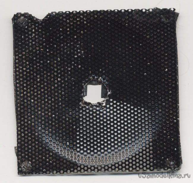 По центру декоративно – защитной решётки я просверлил отверстие, соизмеримое по диаметру с внутренним диаметром выходной трубки.