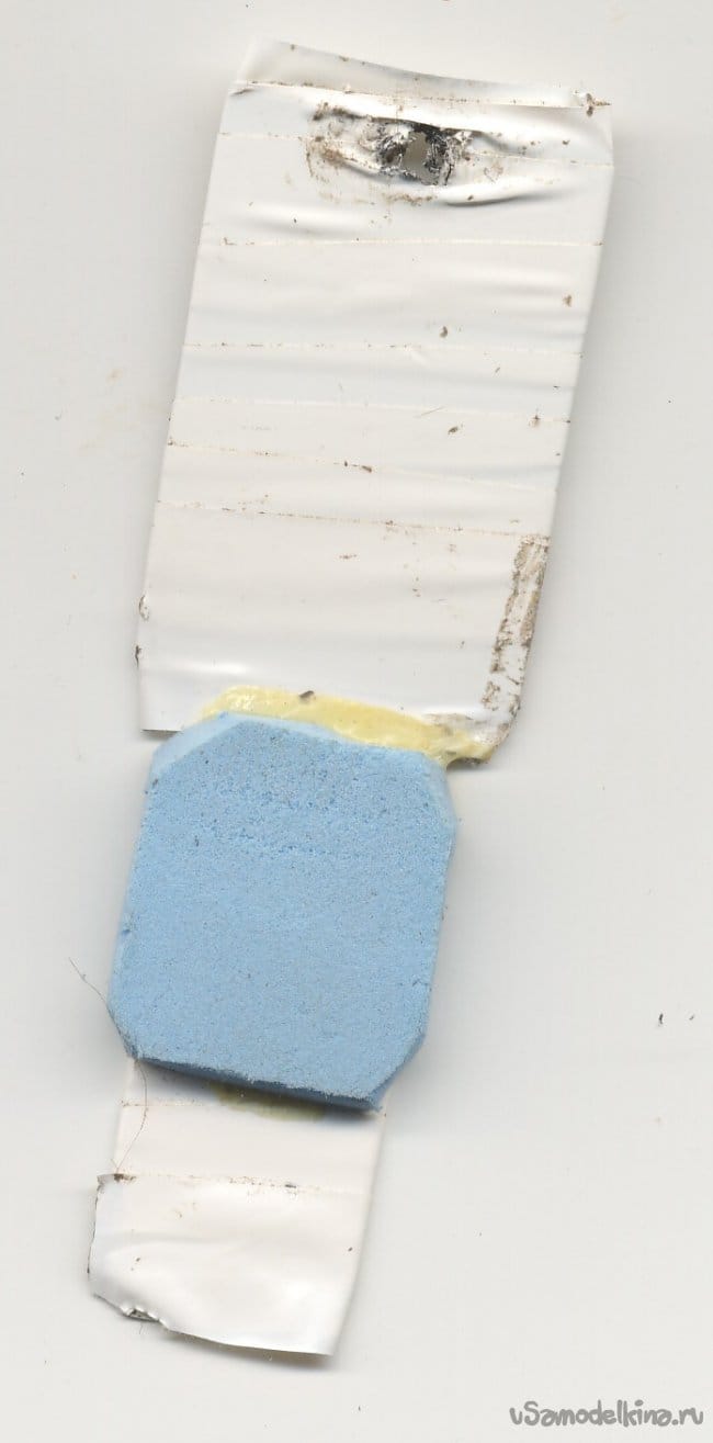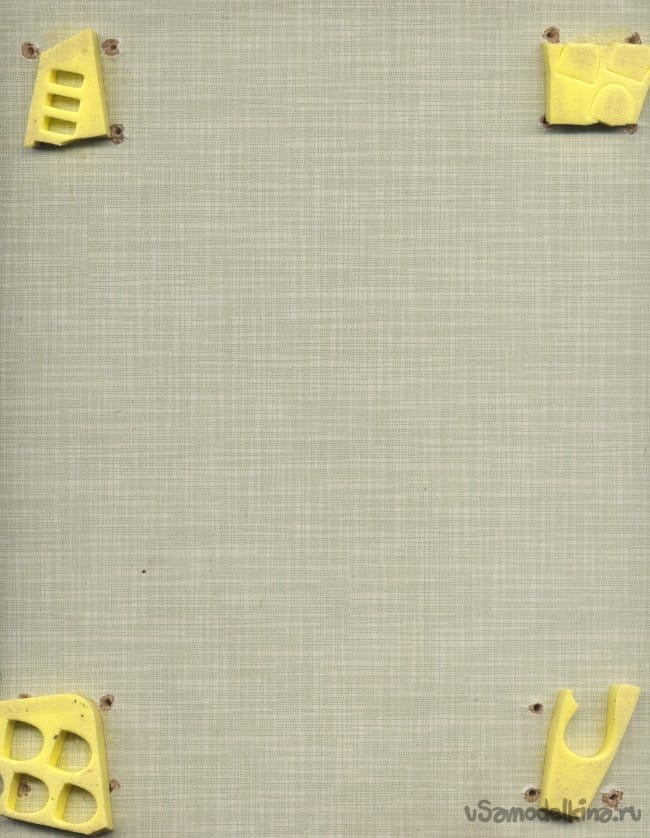 Выбор пал на прямоугольную дощечку для мебели. Я на этой дощечке раньше собирал свои самоделки. Видны четыре приклеенных амортизатора из материала упаковки китайской лазерной указки.
