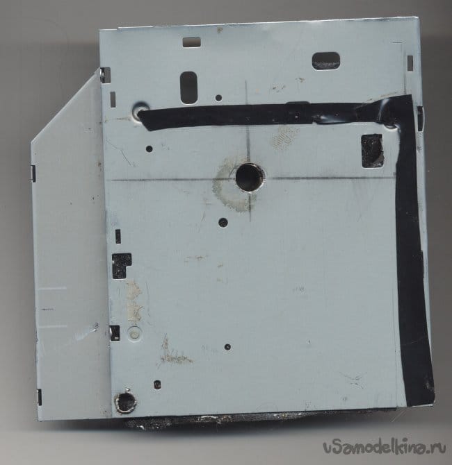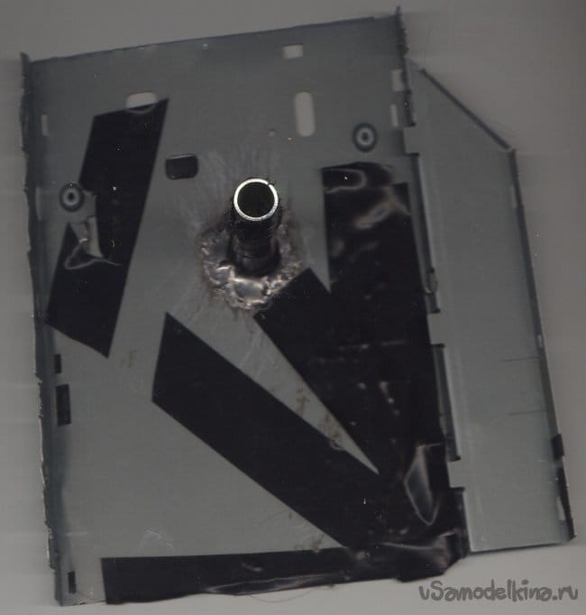 В трубке от рамного дюбеля имелись прорези (по принципу его работы). В крышке дисковода тоже были разного назначения прорези и отверстия. Замотал, заклеил изолентой.