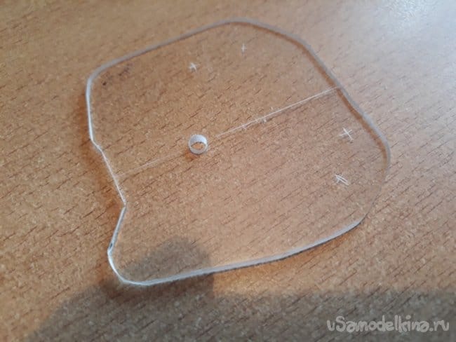 Разметил и просверлил отверстие для этой цели в первой щеке.