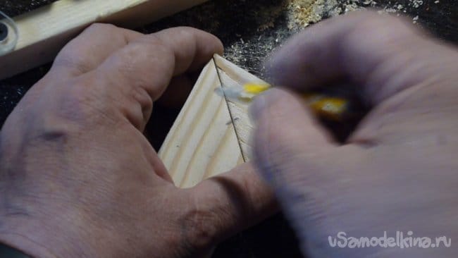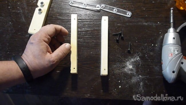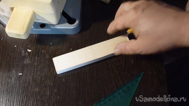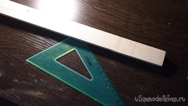 `1. Отрезаем три бруска одинакового размера, в нашем случае ширина 30 мм, толщина 15 мм и длина 150 мм.