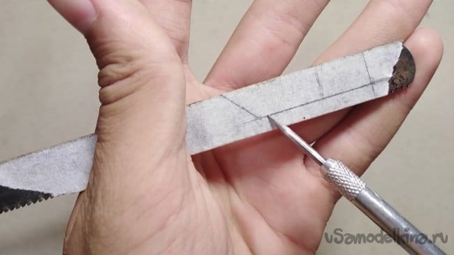Самым первым что нужно сделать это нанести шаблон (чертеж) для вырезания. Я наклеил малярную ленту, на которой можно чётко видеть где резать, ну можно конечно нанести белую краску и уже там наносить чертеж.