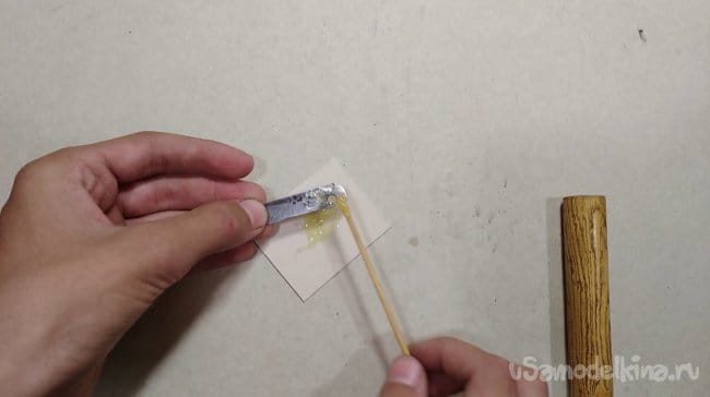 Теперь ближе к финалу. Клеим лезвие в рукоятку, я делаю с помощью клея МеталлБонд, он застывает за несколько минут.