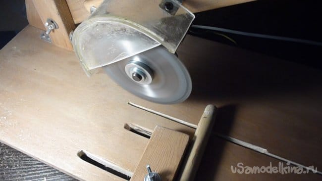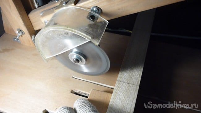 - Обрабатываем брусок шлифовальным кругом отрезной машинки.