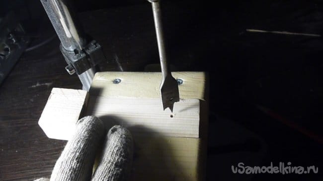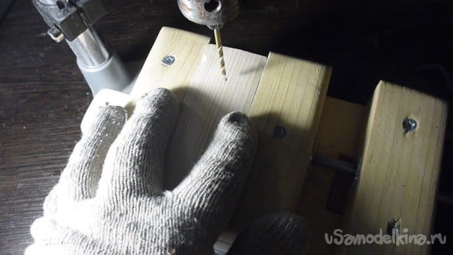 - Сверлим и разворачиваем брусок под определенным углом как показано в видео.