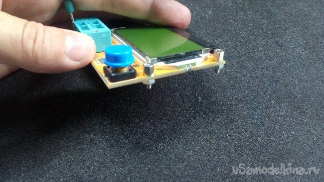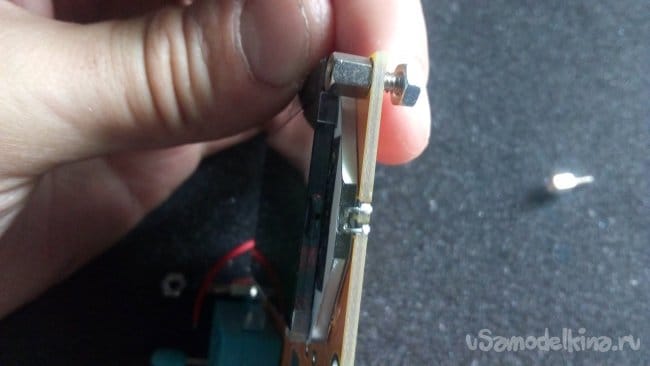 шаг2. Прикручиваем к плате устройства стойки и фиксируем гайки.