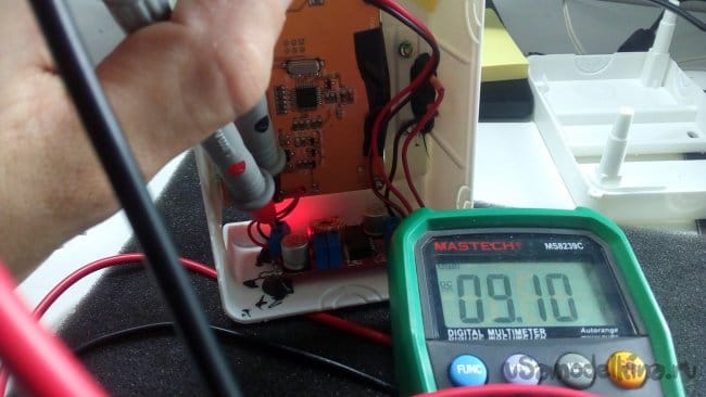 - Питание устройства осуществлялось от батарейки крона (9V)