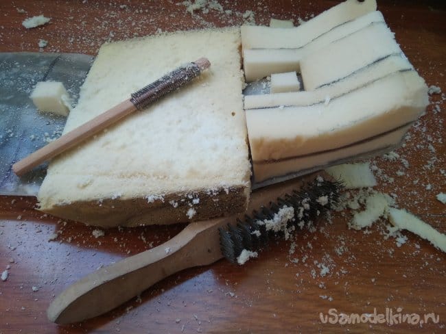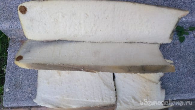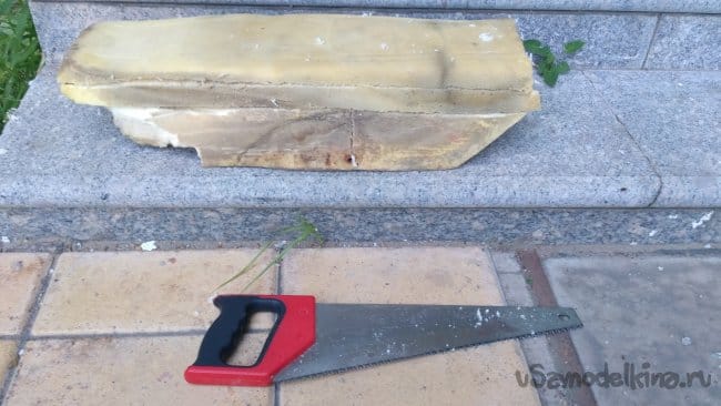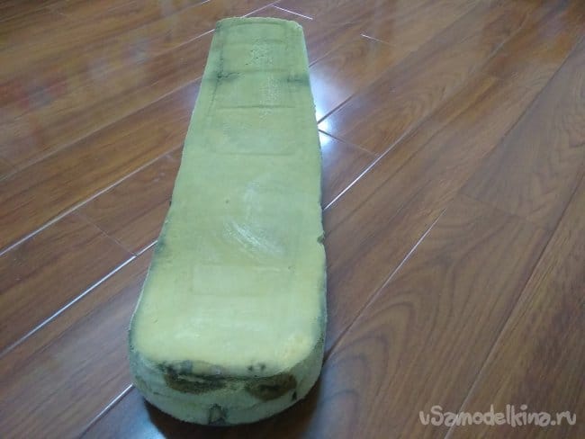 Изначально я посчитал что этого поролона просто не хватит на новое сиденье, потому что геометрически у них совсем разные формы. Но всё же такой вариант оказался оптимальным. В итоге старый поролон напилил пластами, чтобы потом собрать нужную форму из фрагментов (как в тетрис). Забегая вперёд скажу что хватило только-только, а излишков осталось не более горстки совсем мелких обрезков.