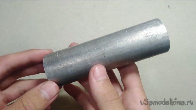 У меня нашлась алюминиевая трубка наружным диаметром 35 мм, конечно это намного больше чем диаметр самого двигателя, диаметр двигателя 27 мм, не смотря на то что внутрянка трубы 33 мм все равно нужен переходник (втулка, переходная муфта) или просто намотать скотча или изоленты, хотя это вообще не рекомендовано. Потому что двигатель нагревается при роботе и клей будет терять свои свойство и двигатель потом провалиться в середину. Длинна трубы у меня 110 мм, можно больше можно меньше.