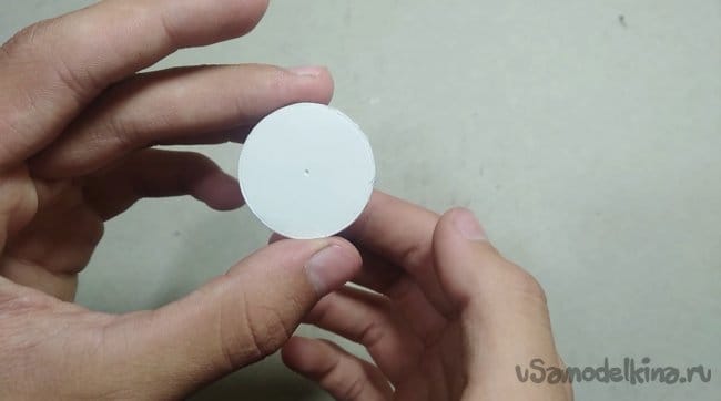 Ну а теперь мы имеем кругляк из вспененного ПВХ пластика толщиною 3 мм, гнездо питания (взял его от старого фонарика), выключатель. На кружке нужно разместить гнездо питания и выключатель.