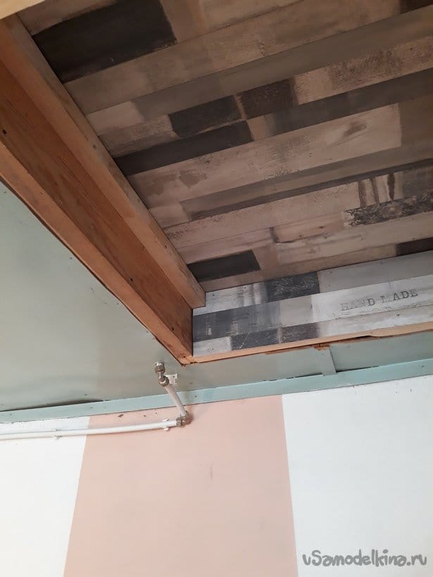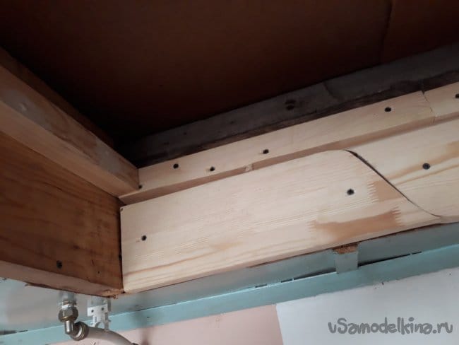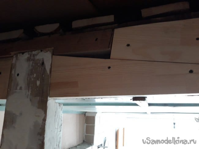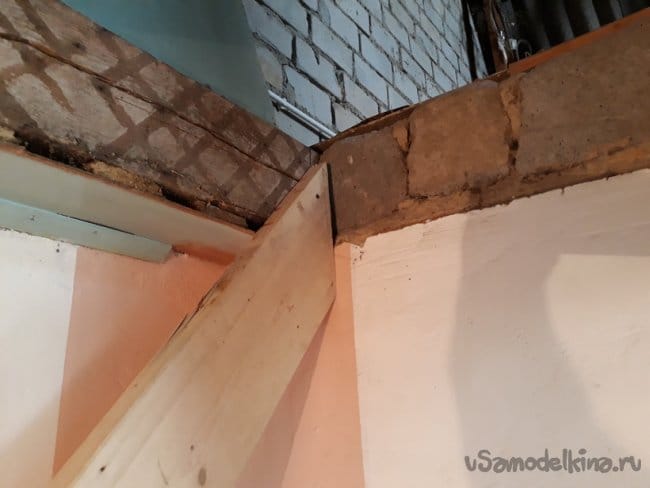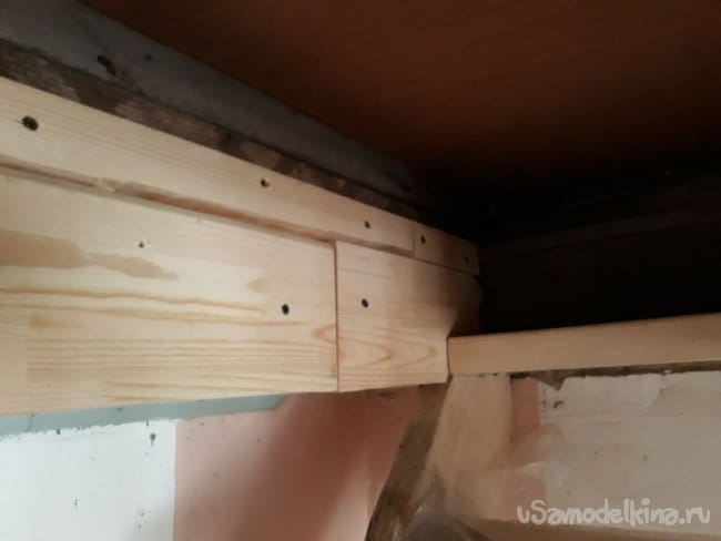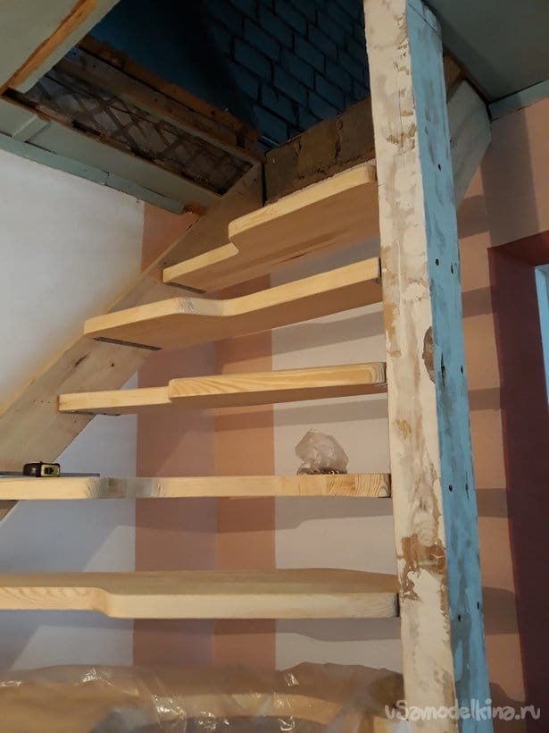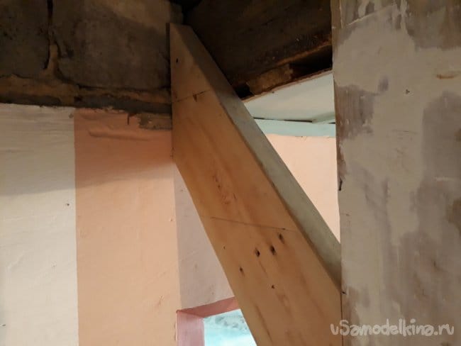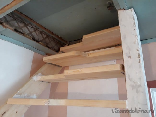 Толщину потолочного перекрытия закрыл, для выравнивания поверхности, обрезками ступеней.