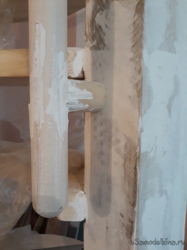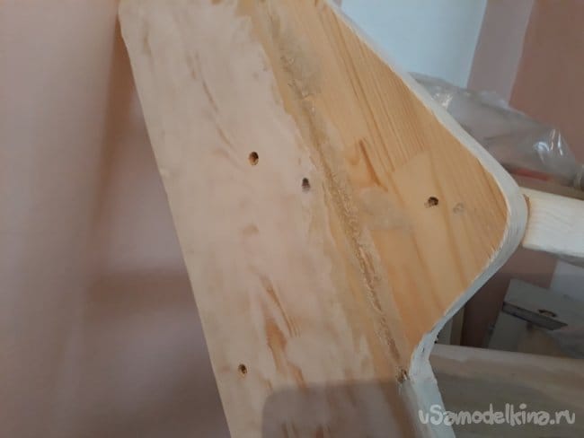 По разметке был произведена опиловка балясин и установлены поручни. Все устанавливалось на клей ПВА и саморезы.