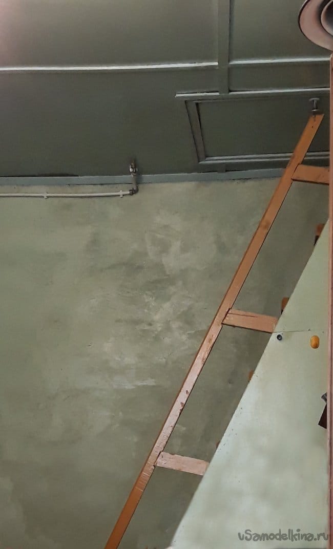 Далее на крышке люка со стороны первого этажа из черенка лопаты соорудил ручку. Которая, позволяла бы более комфортно спускаться в низ. И закрывать люк крышкой.