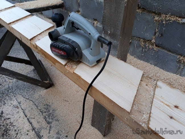 Пришлось эти пазы удалять, так как мои ступени должны были ложиться на металлический уголок, да и шаг проступи не совпадал. Пришлось строгать.