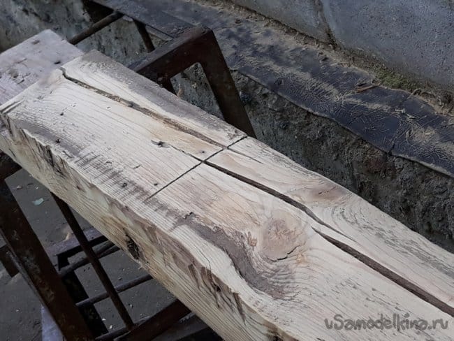 Далее на очереди была балка. С ней было немного сложней, поскольку по длине, с одной стороны, она имела значительную трещину. Практически по всей длине.