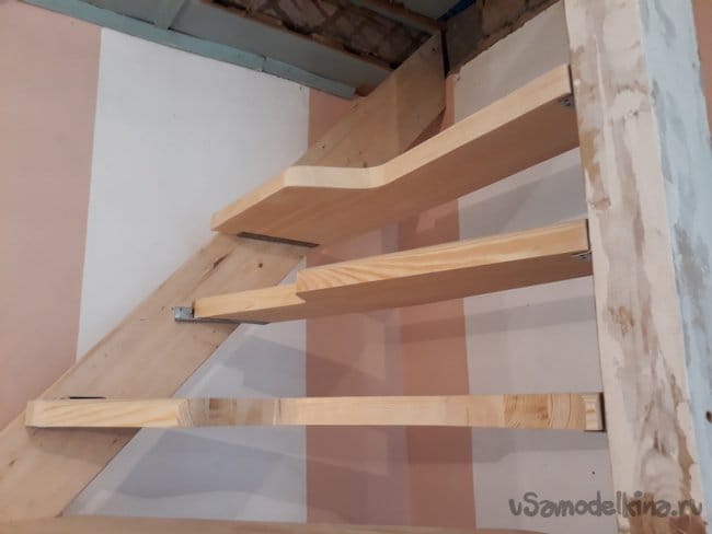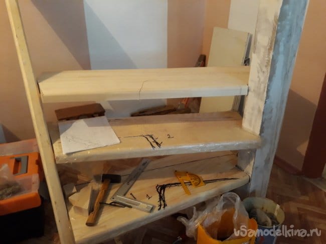 Затем таким же образом справился с третьей ступенькой. Продолжая прикидывать и размечать профиль самих ступенек.