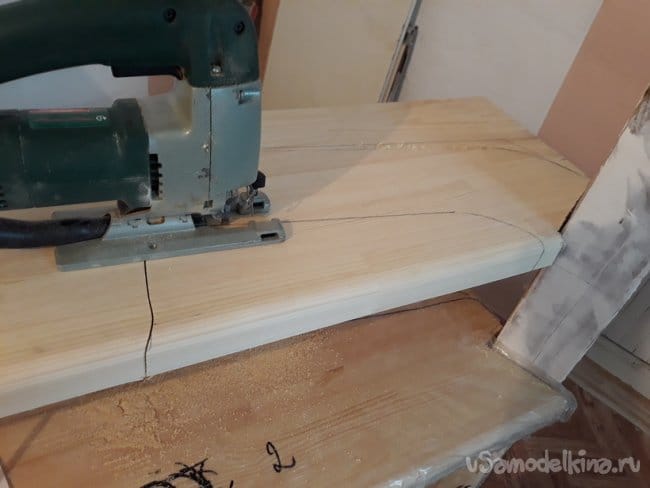Установив, таким образом, три ступеньки и разметив их профиль решился, на конец выпилить их профили. Начал именно с третьей, так как ни что не мешало процессу.