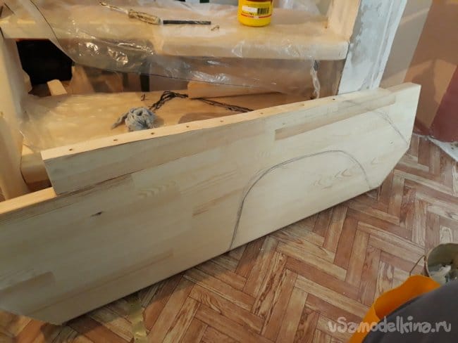 Первую ступень подогнал по месту установки и разметил выпиловку ступени под «Гусиный шаг».