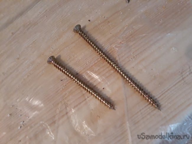 В завершении подумал, что хуже не будет если дополнительно протяну ступени в их торец прямо через тетиву и столб, какими-либо шурупами. В магазине мне приглянулись шурупы по бетону (нагели). Думаю, уж если в бетон вкручиваются, то в дерево тем паче войдут. Взял их разной длины диаметром 10 мм.