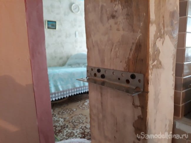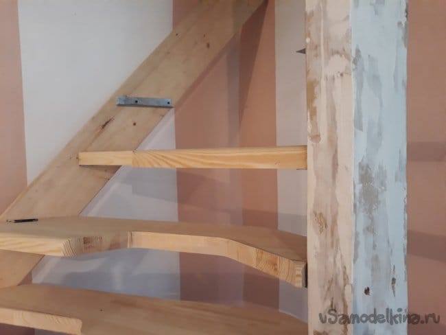 На столбе сделал уголок с загибом, что бы дальняя сторона ступени, тоже имела опору.