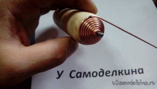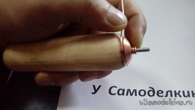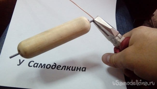 Зажав конец проволоки делаем несколько оборотов вокруг гвоздя.