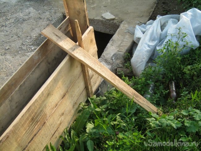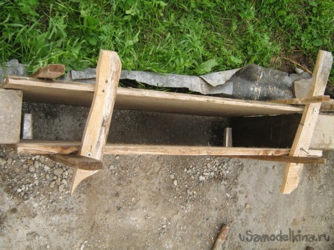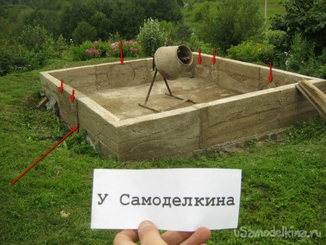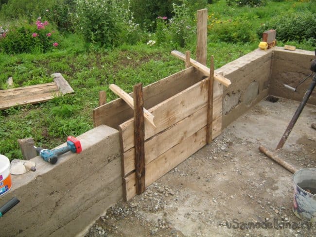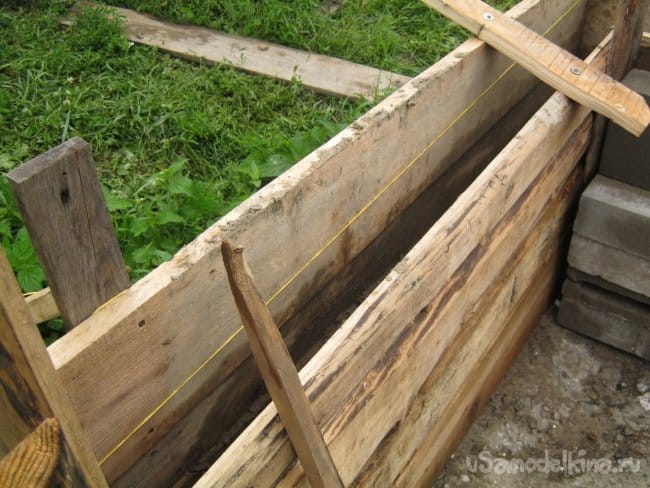 Отлив углы, приступил к заделыванию прорех – отливке прямых, соединяющих частей фундамента. Использовал те же деревянные щиты.