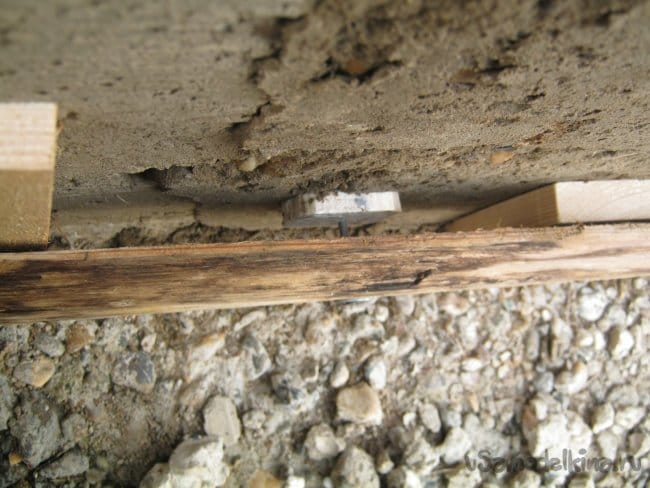 Очень удобно скреплять нижнюю часть опалубки при помощи деревянных конусных элементов-пробок. Деревяшки предварительно обертываются тонким «колбасным» полиэтиленом и на следующее утро после бетонирования без труда аккуратно извлекаются.