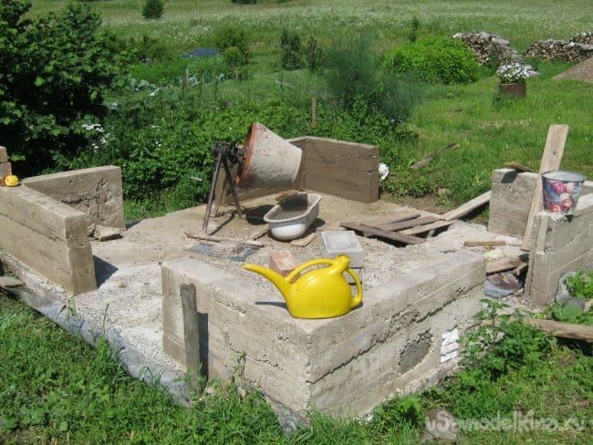 Мой фундамент готов. Перед последующими работами не забываем дать ему набрать первоначальную прочность – выдержать несколько недель не давая высыхать. Придется часто поливать водой, либо заворачивать в полиэтилен. В этом смысле мне повезло – сезон был чрезвычайно дождливый, поливало без конца.