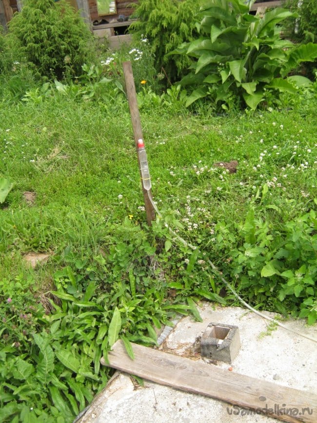 Выясняем перепад высот в разных углах нашего фундамента, принимаем решение о высоте надземной части, получаем максимальную высоту опалубки – ширину щита. Здесь использован самый дешевый вариант измерителя – водяной уровень, можно применить нивелир, уровень лазерный. При небольших расстояниях годится и длинная ровная рейка или прямоугольная труба с пузырьковым уровнем длиной 1 м.