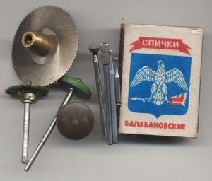 Теперь пришло время выяснить, вал какого из них подойдёт под имеющийся патрон. У меня есть несколько цанговых патронов от пришедших в негодность мини дрелей. Пока нашёл только один. Главное, он вместе с негодным двигателем. Я смогу замерить диаметр вала мотора. Цанговый патрон – штука неплохая. Может и не такая быстрая при смене свёрл, зато хорошо зажимает сверла. Имеет набор цанг. Каждая цанга может надёжно зажимать пару свёрл разного диаметра, если диаметр не сильно различается.