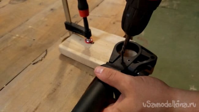 Невесть откуда у меня завалялась ручка от дрели (не родная), я решил её использовать для закрепления дрели. Продолжим.