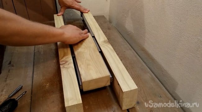 Примеряем и монтируем каретку к двум отрезкам бруса длиной 700 мм.
