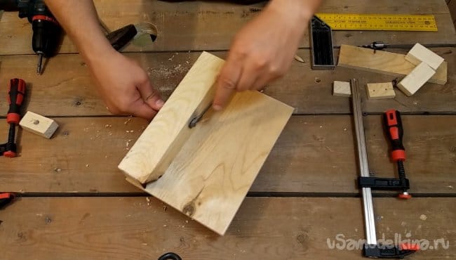 Положить рукоятку на отрезок доски 20х90 мм длиной 30 см.