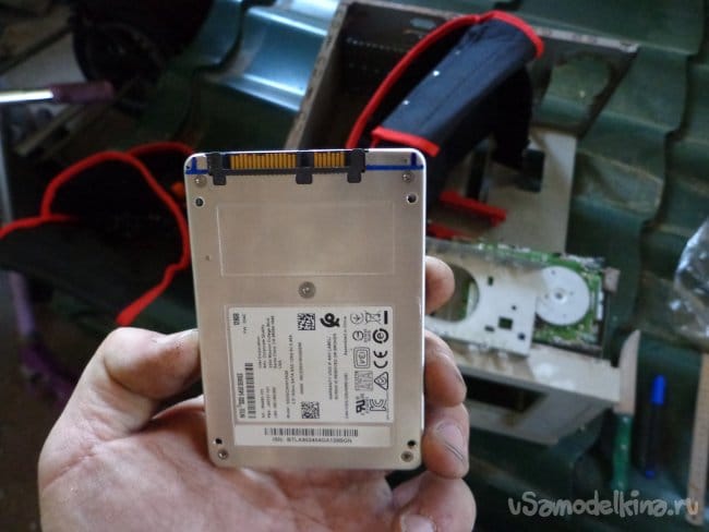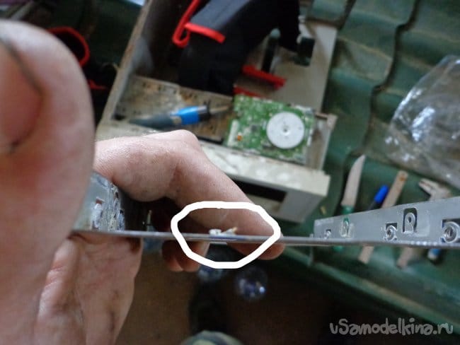 Из-за него невозможно было установить SSD диск. При попытке позагибать порожек плоскогубцами, вся, будущая каретка, начала загибаться в дугу. Отрезал её болгаркой и отшлифовал сначала ушм потом наждачной бумагой.