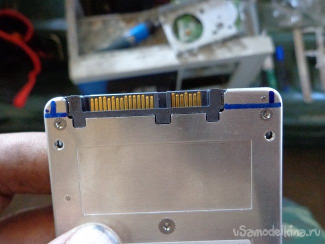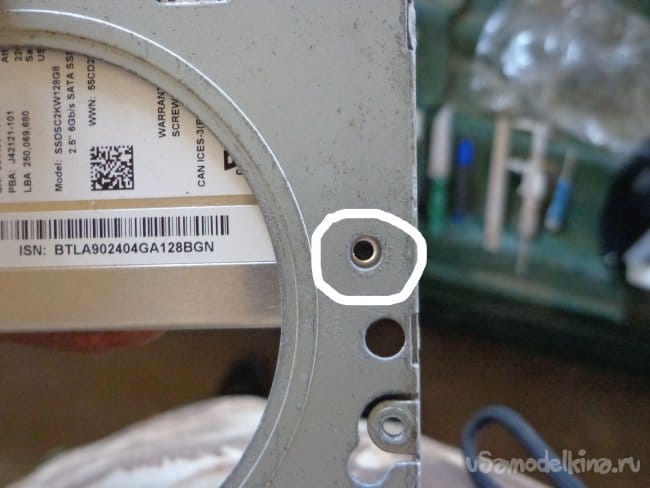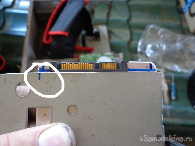 Прежде чем снимать размеры меж отверстиями крепежа на диске нужно определится по месту нахождения SSD на платформе и отметить маркером по диску край каретки.