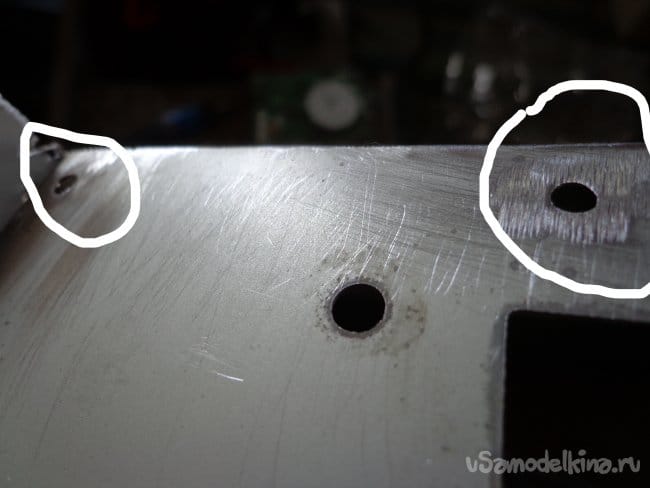 После сверления остались заусенцы, их убрал болгаркой и после зачистил наждачной бумагой.