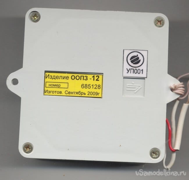 Изделие ООПЗ – 12 - это оповещатель охранно – пожарный звуковой. В простонародье – сирена, он же ревун. Уровень звукового давления не менее 103 дБ. Звук мерзкий. Амплитудно, частотно модулированный. В районе максимума чувствительности человеческого слуха. Питание 12 В, ток потребления не более 200 мА.