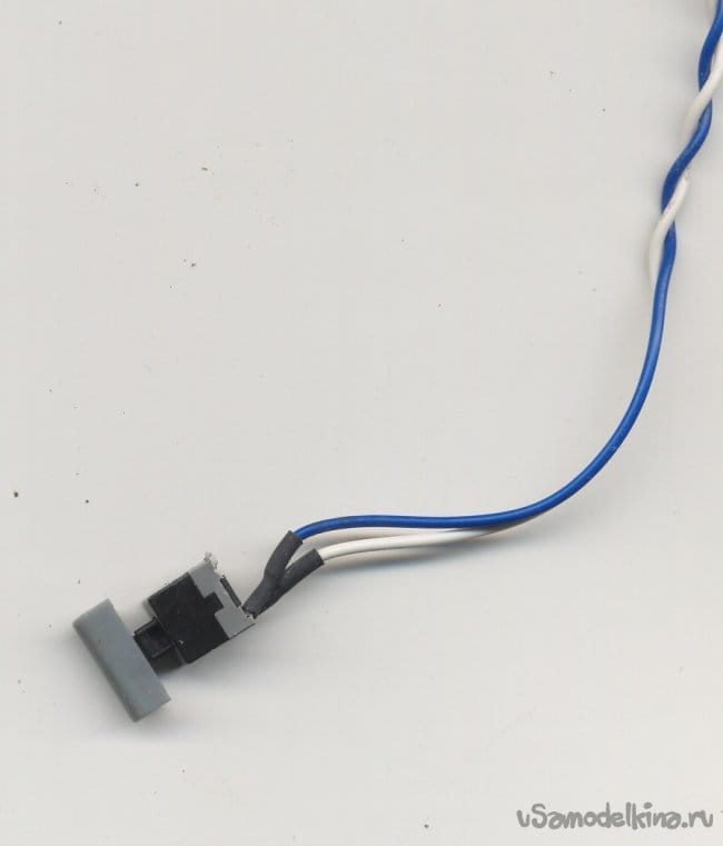 Пометил плюсовой провод узелком. В одной из половинок корпуса вырезал ножом два небольших углубления под провода. Собрал брелок.