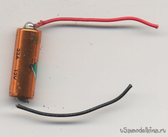 Решил просто припаять проводки к батарейке. Это, конечно, не правильно, но некоторые так делают. Я паял к солевым батарейкам и даже к литий – ионным аккумуляторам (не повторяйте, очень опасно, грозит взрывом и возгоранием !).