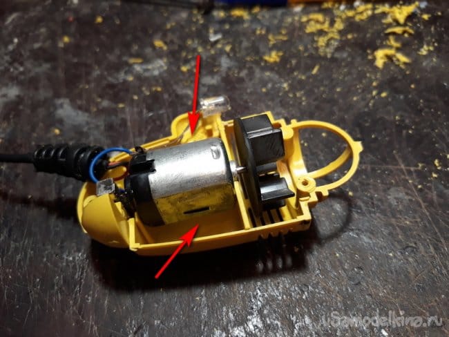 Для начала решил убедиться, что задуманное возможно. Разобрав отсек с двигателем пылесоса, убедился, что это возможно - можно пропустить поток воздуха вокруг двигателя, так как есть место (карманы). А самое главное у двигателя закрыт коллекторный узел.