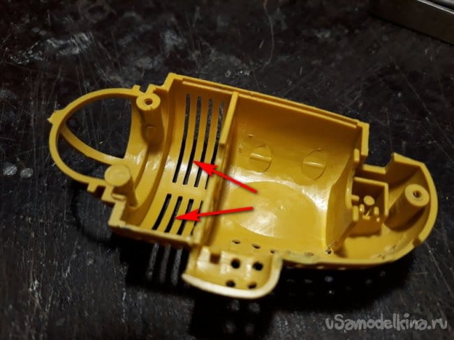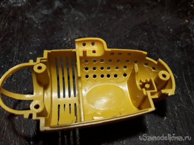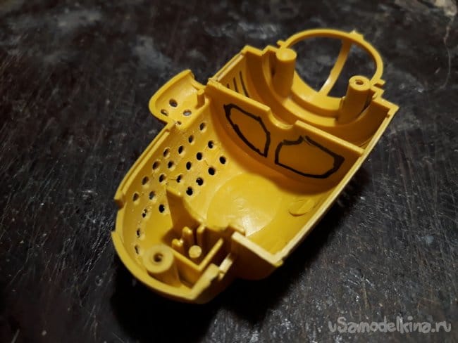 Первое, что я сделал – разметил отверстия для выхода воздуха из-под крыльчатки двигателя. Умышленно разместив их в нижней части обоих половинок кожуха.